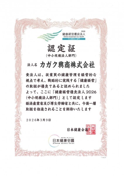 弊社が健康経営優良法人2026(中小規模法人部門)に認定されました。